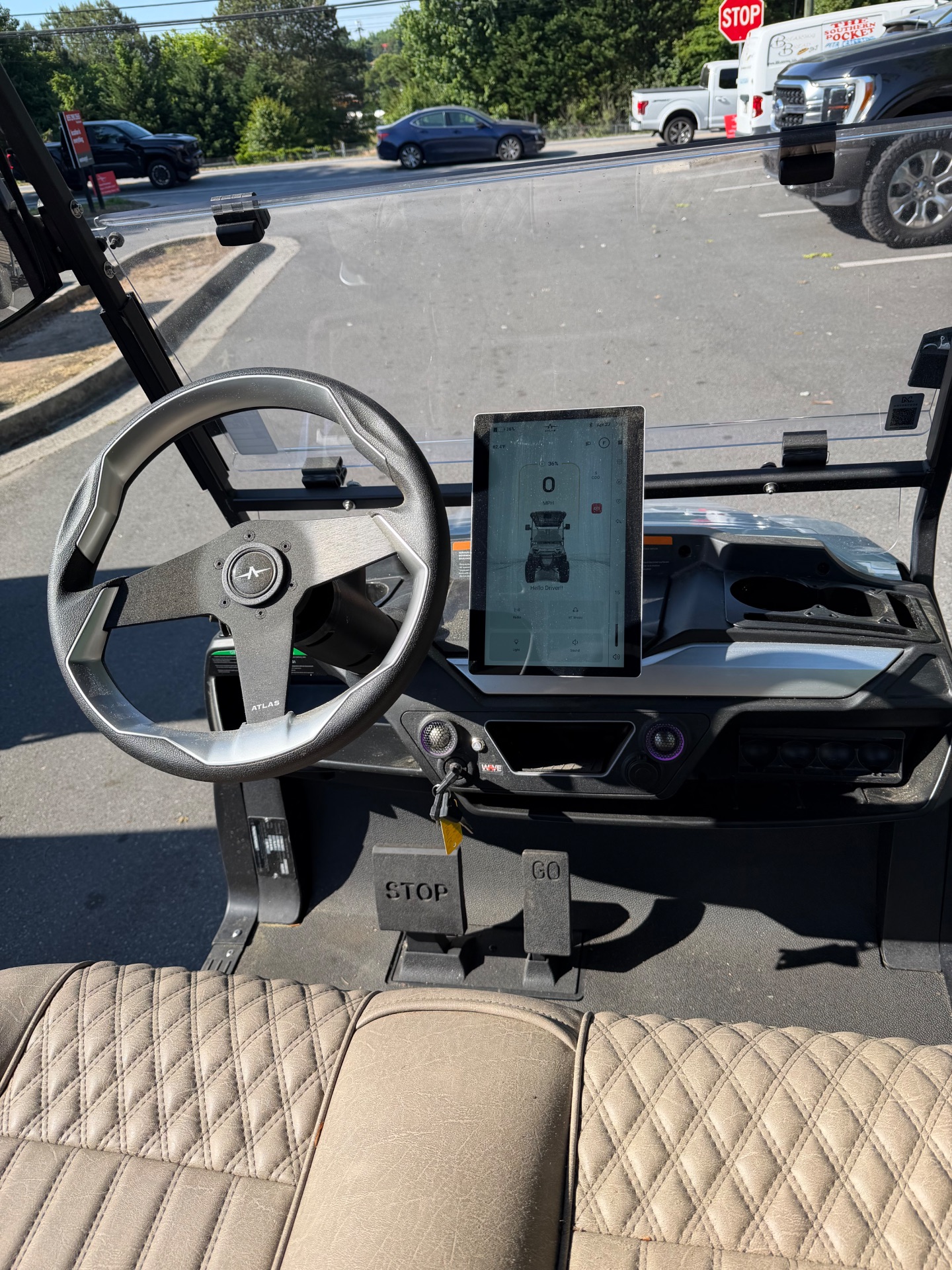 The 2026 Atlas 6P Lifted LSV pairs a 5KW AC Nidec motor with a 210 Ah, 48V Lithium-Ion battery and up to 60 miles of city range.