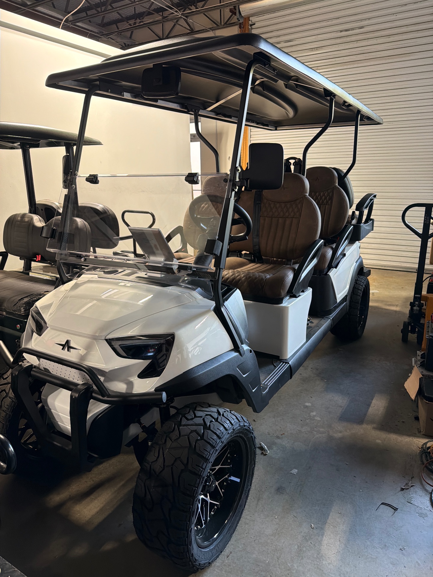 A lifted 6-passenger electric LSV with aluminum construction, premium safety equipment, and a well-appointed cabin for everyday cruising.