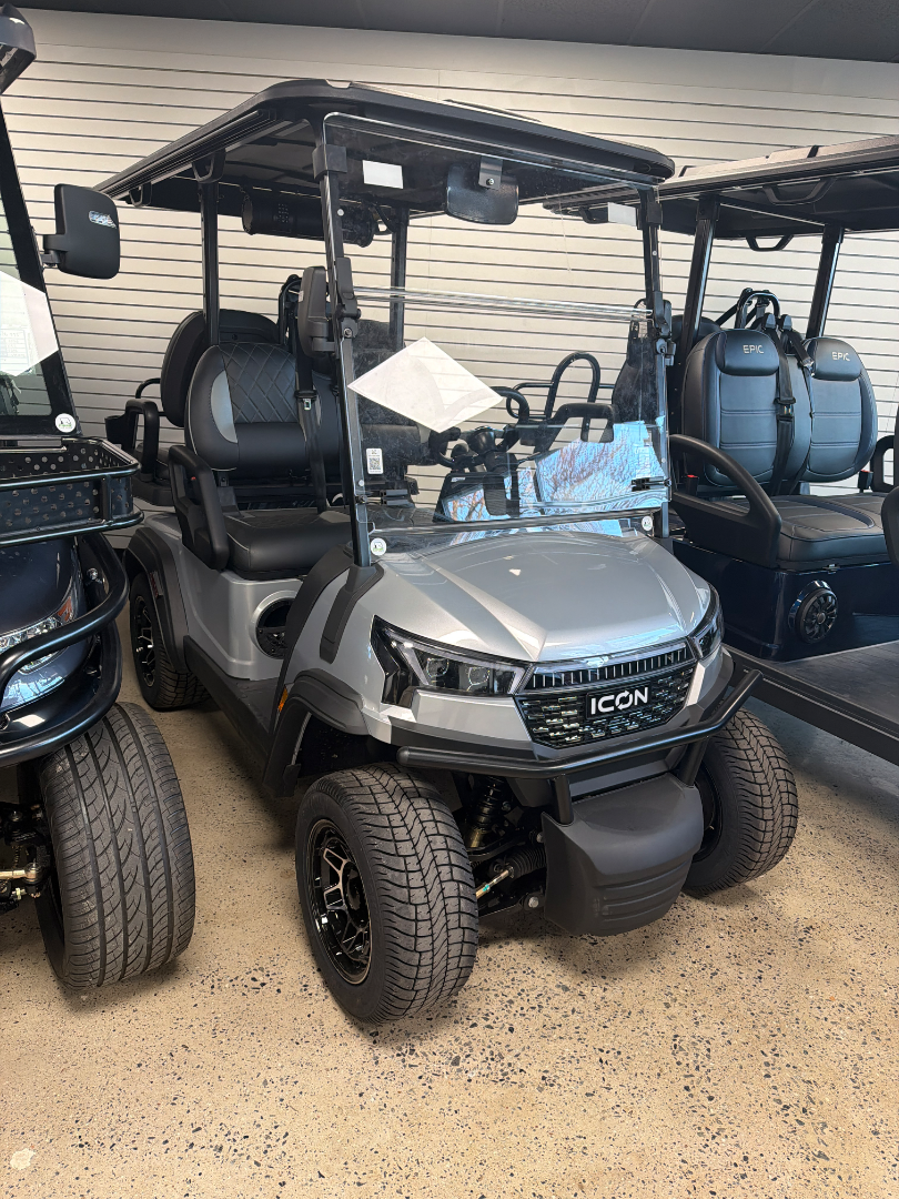 The 2026 Icon EV i40X combines cutting-edge electric vehicle technology and advanced safety features in a stylish design. Perfect for both leisurely drives and practical utility, it offers a spacious and comfortable ride for four people. With its durable build and modern amenities, this model sets a new standard in electric golf carts.
