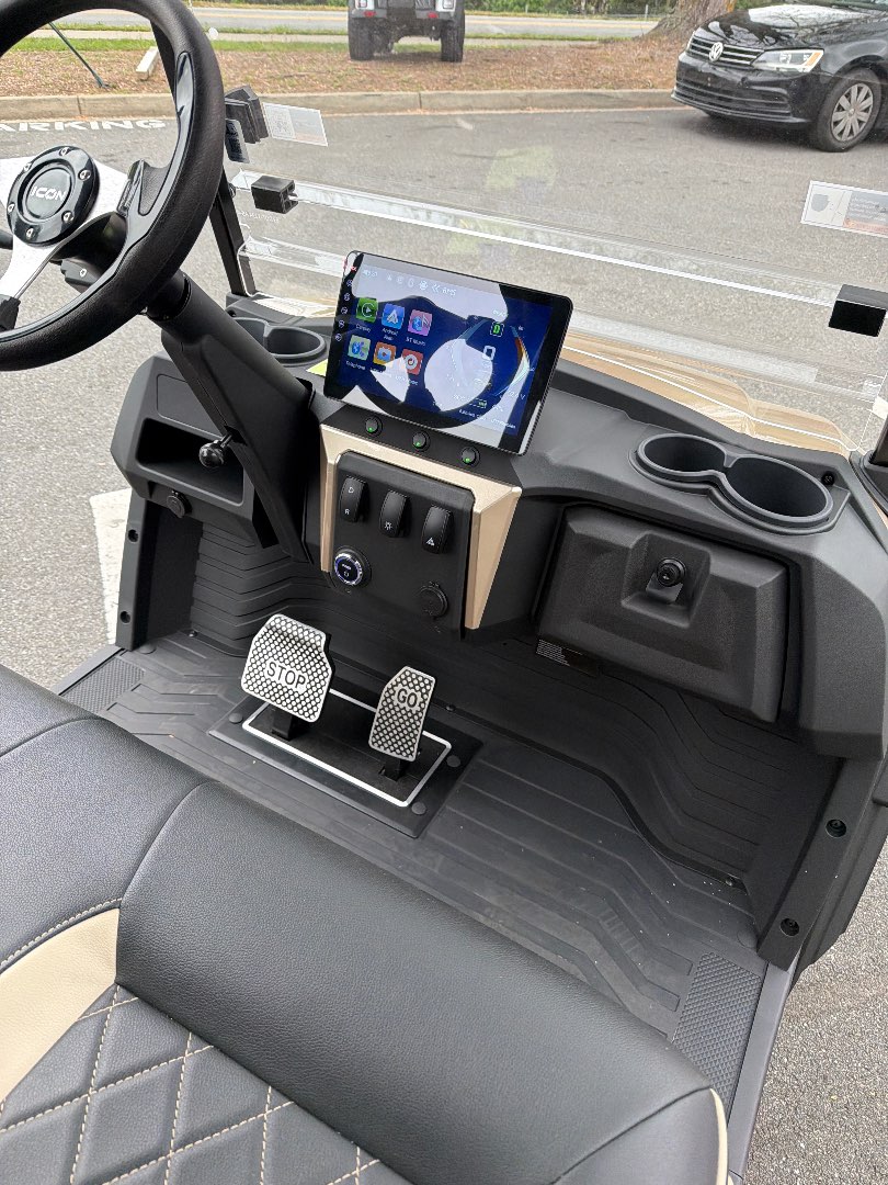 The 2026 Icon EV i40X is a robust golf cart featuring a powerful 48V ICON 5kW motor and a 51V/105Ah lithium battery, ensuring exceptional performance and reliability.