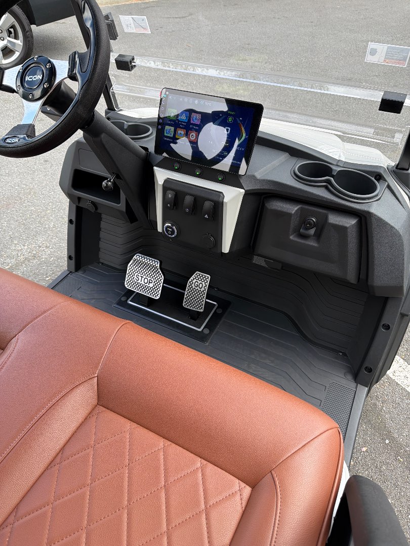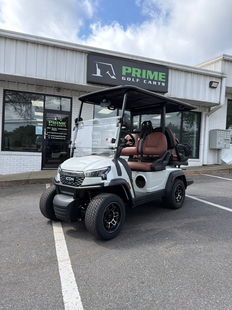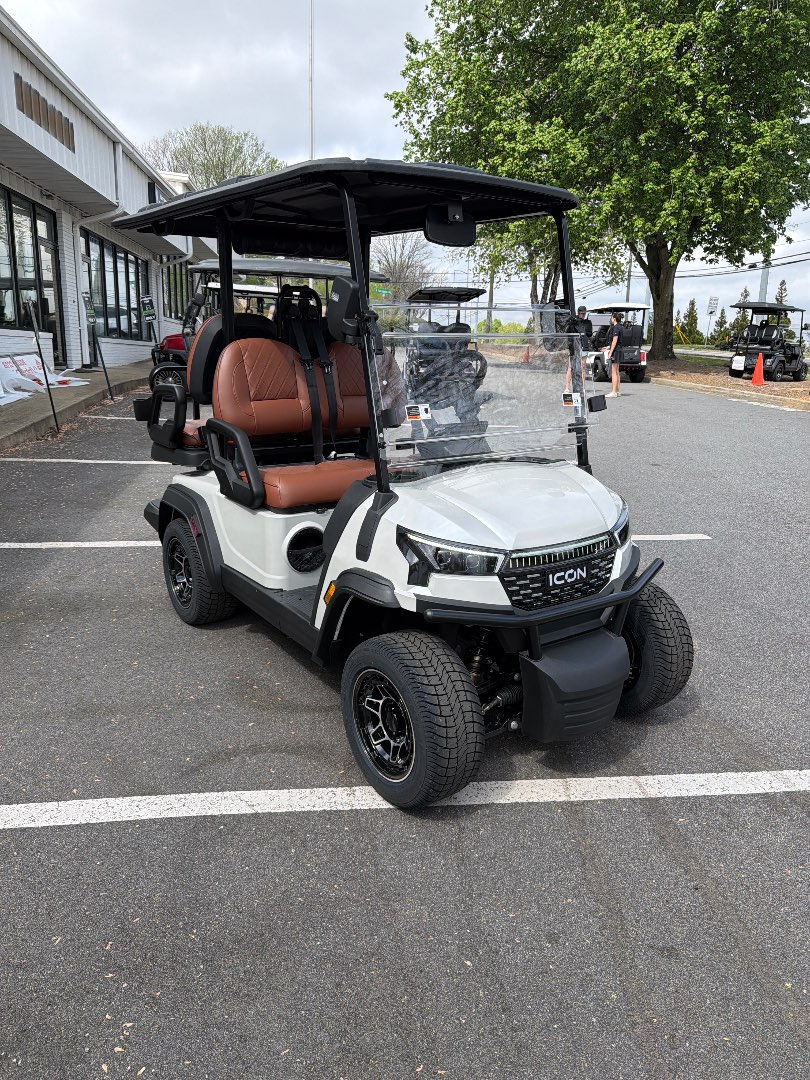 The 2026 Icon EV i40X is a robust golf cart featuring a powerful 48V ICON 5kW motor and a 51V/105Ah lithium battery, ensuring exceptional performance and reliability.