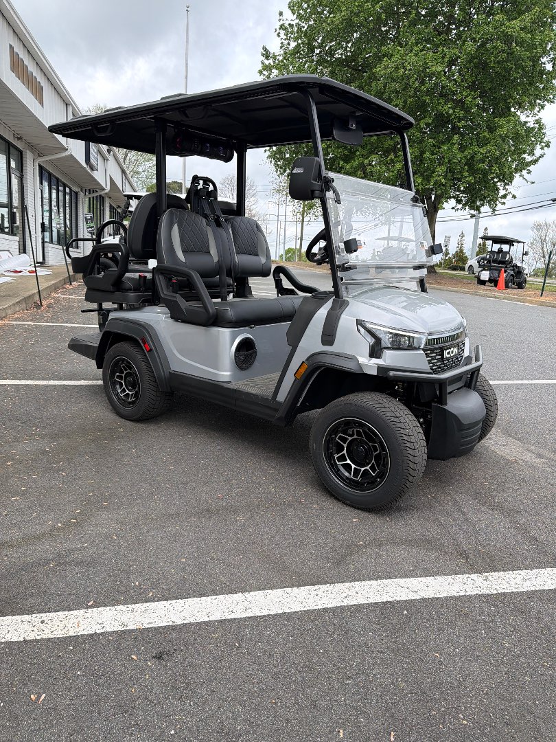 The 2026 Icon EV i40X is a robust golf cart featuring a powerful 48V ICON 5kW motor and a 51V/105Ah lithium battery, ensuring exceptional performance and reliability.